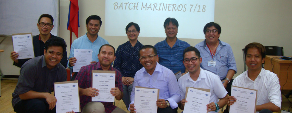 The course was attended by nine (9) participants endorsed by PJMCC member companies. The class, also known as “Batch Marineros 7/18”, was facilitated by seasoned instructors, CE Christopher P. Maambong and Ms. Ana Maria Jasmin M. Sampedro.
